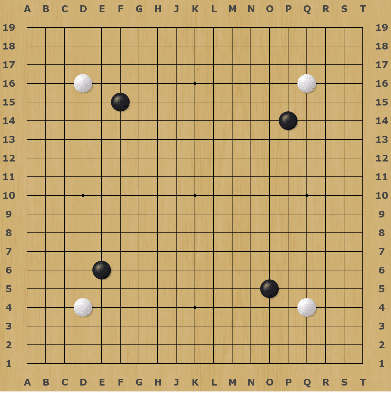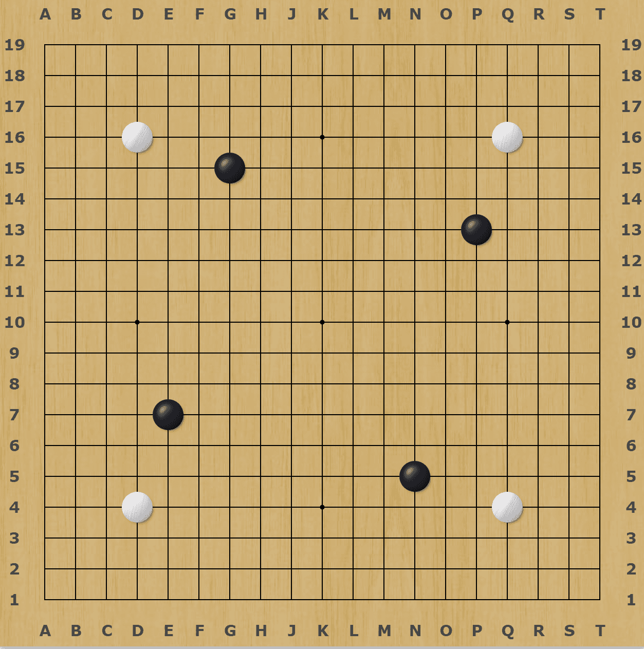 Nova is an AI Go system that employs an opening similar to the Black Hole opening (블랙홀 포석). The comparison below highlights the difference between the typical Black Hole opening (left) and Nova’s variation of the Black Hole opening (right).